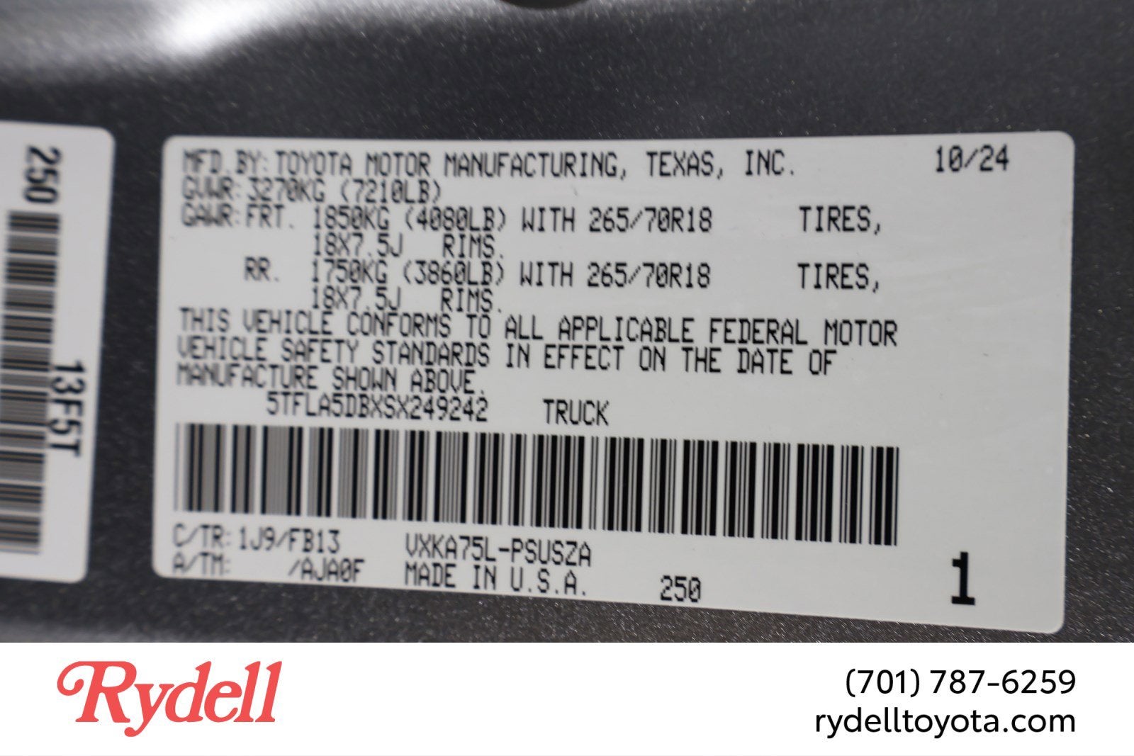 VIN: 5TFLA5DBXSX249242
