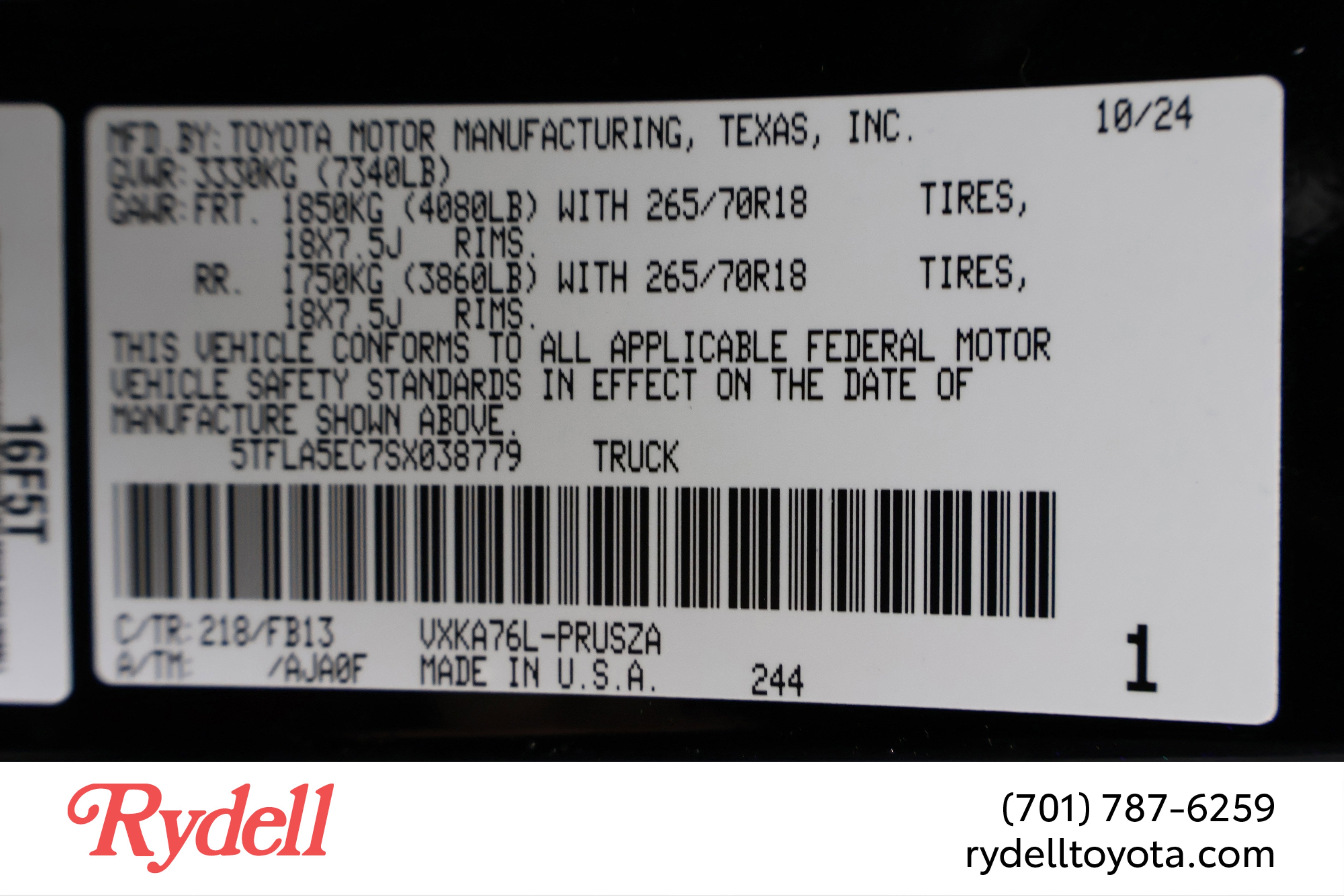 VIN: 5TFLA5EC7SX038779