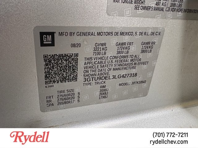 - Front Tire Size: 275/60R20SL