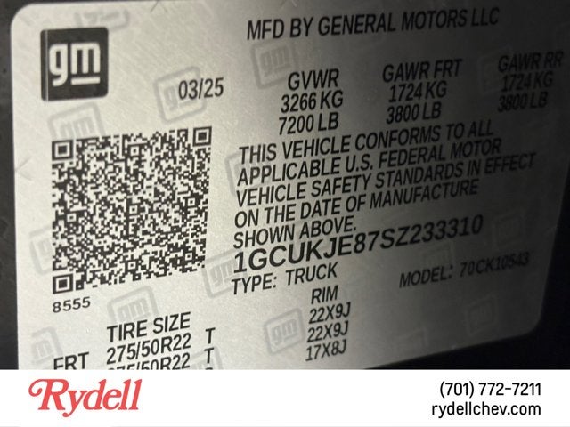 - Front Tire Size: 275/50R22SL